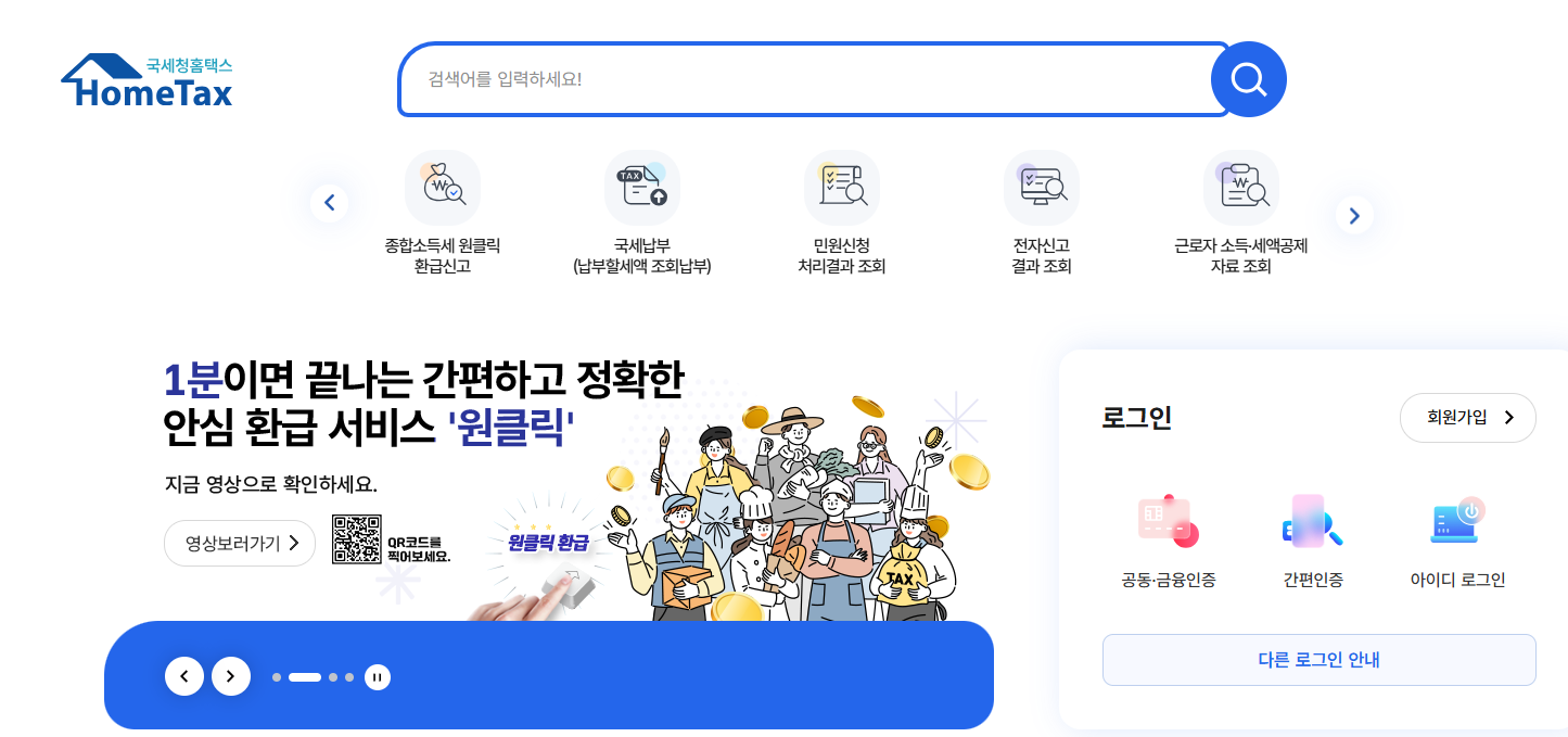 ✅ 국세청 홈택스에 접속하여 환급 대상 여부를 확인하고, 지금 바로 ‘원클릭’ 서비스를 신청해보시기 바랍니다!