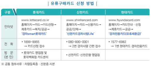 경차 유류세 환급을 받기 위해서는 먼저 전용 카드를 발급받아야 합니다