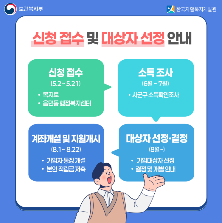 신청이 완료되고 대상자로 선정되면, 8월부터 본인 저축금을 적립할 수 있습니다.