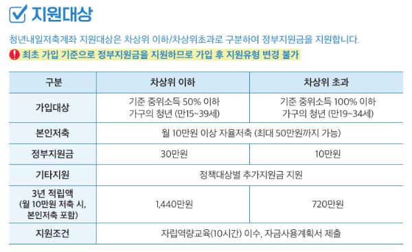 청년 내일저축계좌 지원 내용