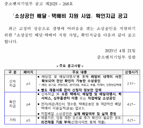 특히 배달앱·택배업계와의 연계가 점차 활발해지는 시장 상황에서, 작은 지원이 곧 매출 증대의 마중물 역할을 할 수 있다는 점에서 실질적인 도움이 될 수 있는 제도입니다.